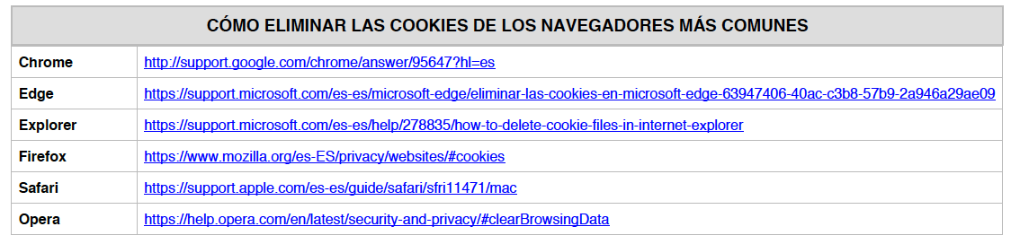 Las cookies y otras tecnologías similares tales como local shared objects, flash cookies o píxeles, son herramientas empleadas por los servidores Web para almacenar y recuperar información acerca de sus visitantes, así como para ofrecer un correcto funcionamiento del sitio.