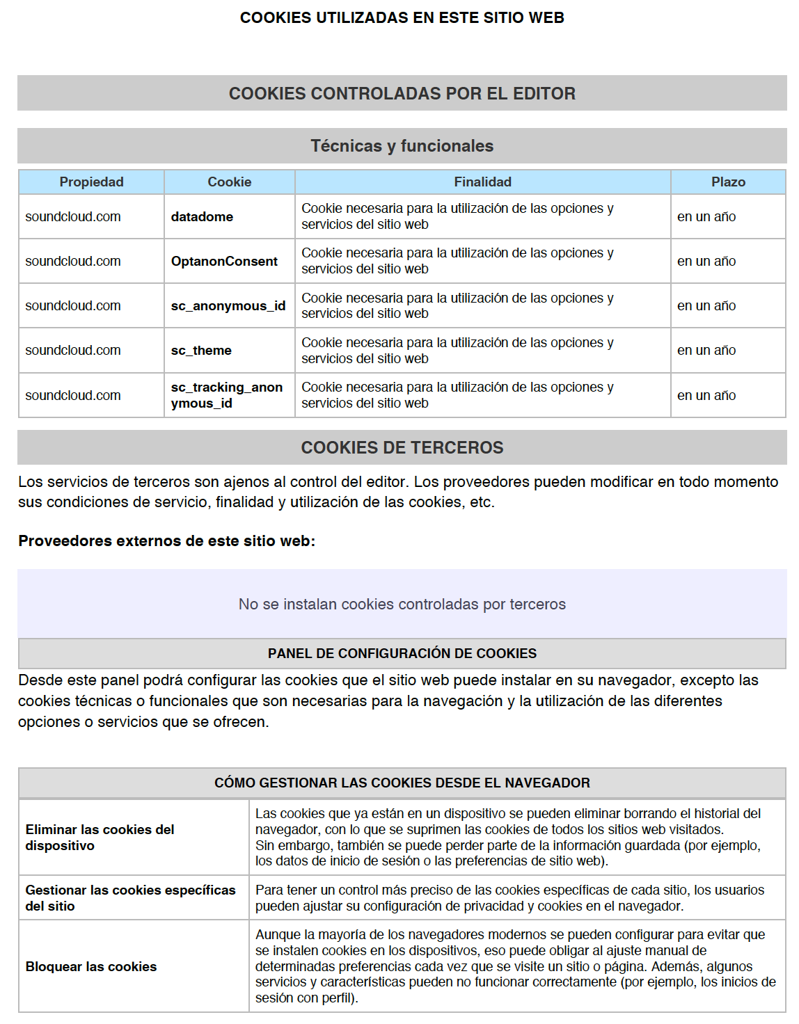 - Cookies propias: son aquellas que se envían al equipo terminal del usuario desde un equipo o dominio gestionado por el propio editor y desde el que se presta el servicio solicitado por el usuario.